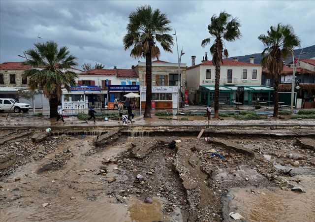 Foça'da sel: Deniz kahverengiye büründü!