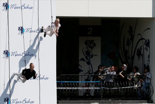 İzmir'in Karşıyaka ilçesinde bir alışveriş merkezi, bünyesindeki spor giyim markalarının ilkbahar ve yaz koleksiyonlarını "Dikey Defile" düzenleyerek tanıttı.