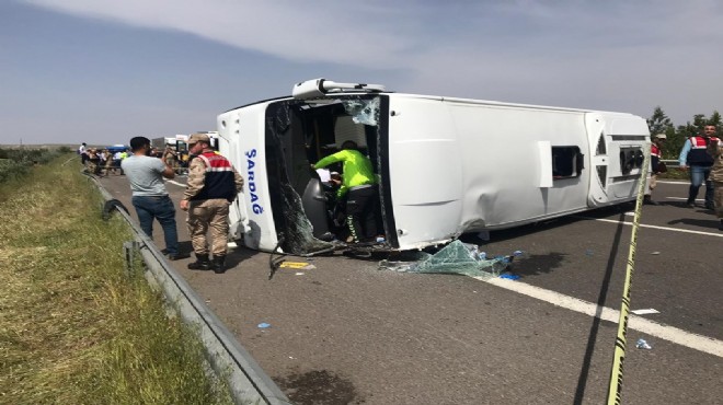 Kahramanmaraş'ın Elbistan ilçesinden, 1 Mayıs kutlamalarına katılmak üzere Şanlıurfa'ya giden işçileri taşıyan midibüs, sürücüsünün kontrolünden çıkıp devrildi.