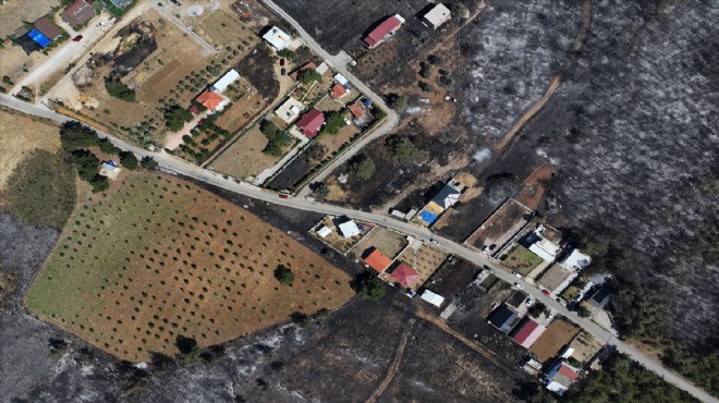 Yangında zarar gören alanlar dronla görüntülendi.