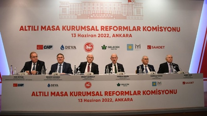 CHP Ekonomi Politikaları ve İşveren Örgütlerinden Sorumlu Genel Başkan Yardımcısı ve Parti Sözcüsü Faik Öztrak, DEVA Partisi Ekonomi ve Finans Politikaları Başkanı İbrahim Çanakcı, Demokrat Parti Ekonomik İşler Başkanı Bülent Şahinalp, Gelecek Partisi Politika İzleme Kurulu Başkanı Feridun Bilgin, İYİ Parti Ankara Milletvekili Durmuş Yılmaz ve Saadet Partisi Ekonomik İşler Başkanı Sabri Tekir'den oluşan Kurumsal Reformlar Komisyonu, yaptıkları çalışmalara ilişkin hazırladıkları raporu bugün Türkiye Barolar Birliği Litai Konukevi’ndeki toplantıda açıkladı. Toplantı sonrası siyasiler, gazetecilerin sorularını yanıtladı.
