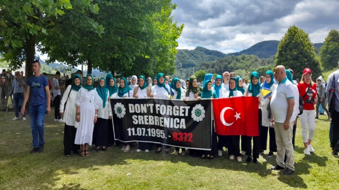 Efe Can TAN/GERÇEKİZMİR - İzmir Büyükşehir Belediye Başkanı Soyer ve beraberindeki İzmir heyeti 27 yıl önce gerçekleşen Srebrenitsa Soykrımı’nın anma törenine katıldı. Dünyanın dört bir yanından anma töreni için ülke temsilcileri Bosna-Hersek’e akın ederken bir çok vatandaş ve dernek de 27 yıl önce yaşanan büyük acıyı unutturmamak için törene katıldı. Bosna-Hersek’te 2005’ten beri düzenlenen ‘Marş Mira’ yürüyüşüne katılan Türk vatandaş ise yaşadıkları tecrübeyi aktardı.