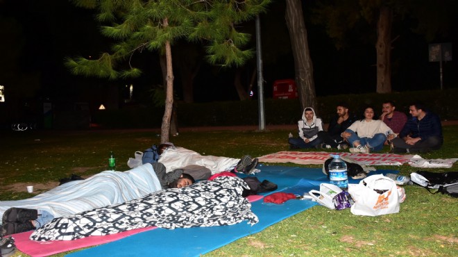 Üniversite okumak için farklı şehirlerden İzmir'e gelen öğrenciler, ev kiraları ile yurt fiyatlarının yüksek olması nedeniyle barınacak yer bulamayınca parkta sabahladı. Buca ilçesindeki Hasanağa Parkı'nda bir araya gelen bir grup öğrenci, 'Barınamıyoruz, sokaktayız' yazılı pankart açarak duruma tepki gösterdi.