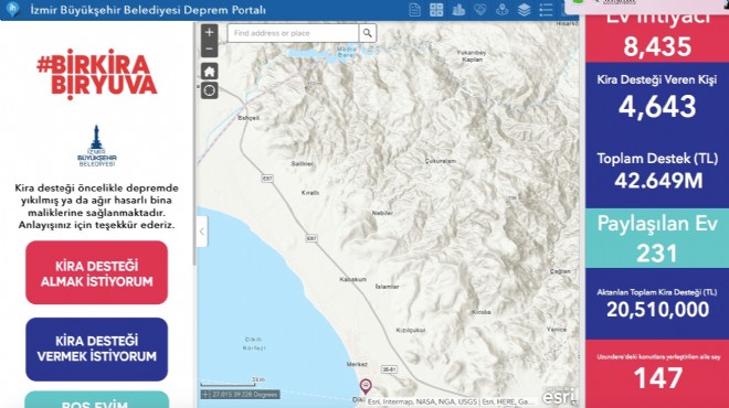 Öte yandan İzmir Büyükşehir Belediyesi 30 Ekim depreminde evleri orta hasarlı olan 629 ailenin 5’er bin liralık kira destek ödemesini tamamladı. Bu hafta içinde evleri orta hasarlı olan 40 ailenin kira yardımı da banka hesabına yatırılmış olacak. Büyükşehir, başvuru ve değerlendirmelere göre kira yardımına devam edecek. İzmir Büyükşehir Belediye Başkanı Tunç Soyer, orta hasarlı ev tespiti yapılmış aileler için belediye bütçesinden her bir haneye 5’er bin liralık kira desteği verileceğini söylemiş, bu kapsamda 35 milyon liralık bir kaynak ayıracaklarını açıklamıştı. Ağır hasarlı binalardaki 179 haneye 10 bin liralık destek ödemesini de kendi bütçesinden yapan Büyükşehir, bu hafta 50 ağır hasar tespiti yapılmış daire sahibinin kira yardım ını da banka hesaplarına yatırmış olacak.
