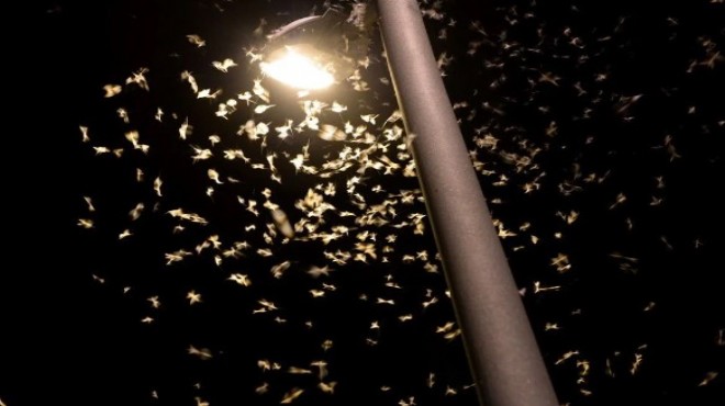 Ardahan Köprüsü bölgesinde akşam saatlerinde toplanan çok sayıda sinek, aydınlatma lambalarının etrafını sardı.