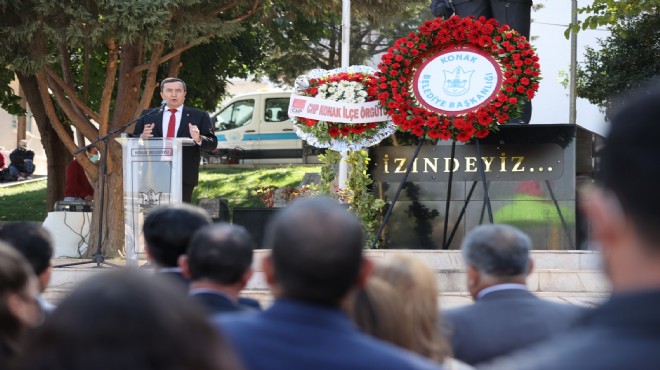 Çelenk takdiminin ardından konuşmasını gerçekleştiren CHP konak İlçe Başkanı Çağrı Gruşçu, tek çıkış yolunun Cumhuriyet olduğunu vurgulayarak şunları söyledi: