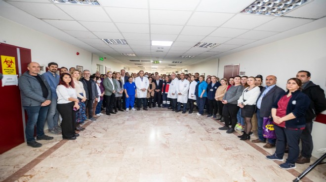 Büyükşehir Belediye Başkanı Tunç Soyer, Türkiye’yi sarsan deprem felaketinin ilk gününden itibaren Hatay’da depremzedelere şifa dağıtan Eşrefpaşa Hastanesi personeline teşekkür ziyaretinde bulundu. Eşrefpaşa Hastanesi’ne giden Başkan Soyer’e İzmir Büyükşehir Belediyesi Genel Sekreteri Barış Karcı da eşlik etti.