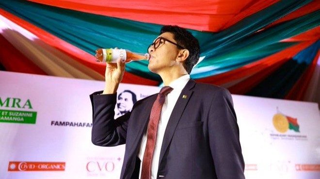 Madagaskar Cumhurbaşkanı Andry Rajoelina, yeni tip corona virüse (Covid-19) karşı geliştirdikleri önleyici ve tedavi edici bitkisel ilacı canlı yayında içerek tanıttı.