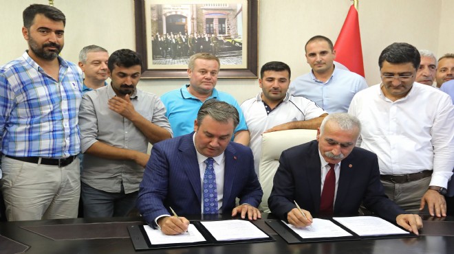 Buca Belediyesi ile Disk’e bağlı Genel İş Sendikası 5’nolu Şube arasında 139 kadroyu işçiyi ilgilendiren toplu iş sözleşmesi imzalandı. Sözleşme imza törenine Buca Belediye Başkanı Levent Piriştina, Disk Bölge Temsilcisi Memiş Sarı, CHP Buca İlçe Başkanı Kasım Akdağ, Genel İş Sendikası 5’no’lu Şube Başkanı Ali Haydar Kara, sendika temsilcileri, bürokratlar ve işçiler katıldı. Toplu iş sözleşmesiyle Buca Belediyesi’nde çalışan 139 kadrolu işçinin çıplak ücretlerine yüzde 15 oranında zam yapıldı.