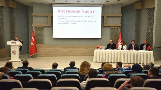 “Gizli Tehlike: Kist Hidatik” başlıklı panel; Bornova Belediyesi, Türkiye Hidatidoloji Derneği ve Belediye Veteriner Hekimleri Derneği işbirliğinde Bornova Belediyesi Kültür Merkezi’nde yapıldı. Moderatörlüğünü aynı zamanda Dünya Ekinokokkozis Federasyonu Başkan Yardımcılığı görevini de yürüten Türkiye Hidatidoloji Derneği Başkanı Prof. Dr. Nazmiye Altıntaş ile Belediye Veteriner Hekimleri Derneği Genel Sekreteri Mustafa Yalçın’ın yaptığı panelde hayvanlarda görülüp insanlara da geçen bu önemli hastalık her yönüyle ele alındı.
