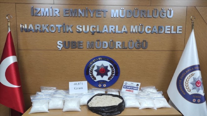 İzmir'de, dedektör köpeği "Layka"nın da katıldığı operasyonda kömür çuvalında 40 kilo 930 gram metamfetamin ele geçirildi.