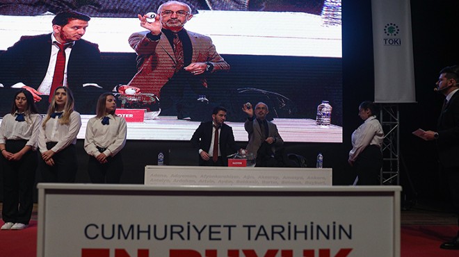 İzmir'de proje kapsamında inşa edilecek 12 bin 400 konut için başvuru yapan 225 bin 956 kişi arasından hak sahiplerinin belirlenmesi için kura çekimine geçildi.