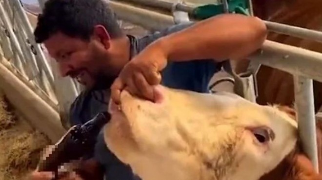 Sosyal medyada, ineğe içki içirildiğinin öne sürülmesi üzerine Kurban Bayramı öncesi kısa sürede yayılan görüntüler, tepki çekti. İlçe Tarım ve Orman Müdürlüğü ekipleri, görüntülerin kaydedildiği çiftlikte incelemelerde bulundu.