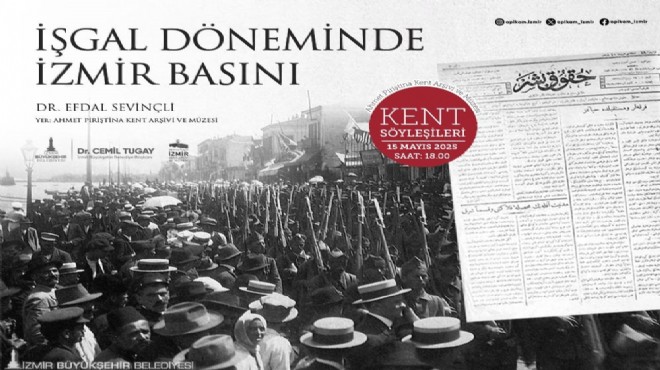 İzmir Büyükşehir Belediyesi Ahmet Piriştina Kent Arşivi ve Müzesi’nde (APİKAM) devam eden “Kent Söyleşileri” kapsamında 15 Mayıs 1919’da başlayan ve 9 Eylül 1922’de son bulan işgal yılları boyunca İzmir’de basın hayatının durumu mercek altına alınacak. Dr. Efdal Sevinçli’nin konuşmacı olarak katılacağı “İşgal Döneminde İzmir Basını” söyleşisi, 15 Mayıs Perşembe günü ziyaretçilerini bekliyor.