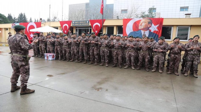İzmir Adnan Menderes Havalimanı'nda, 'Zeytin Dalı Harekatı'nda görev alacak Polis Özel Harekat (PÖH) timinin, bölgeye uğurlanması için tören düzenlendi.