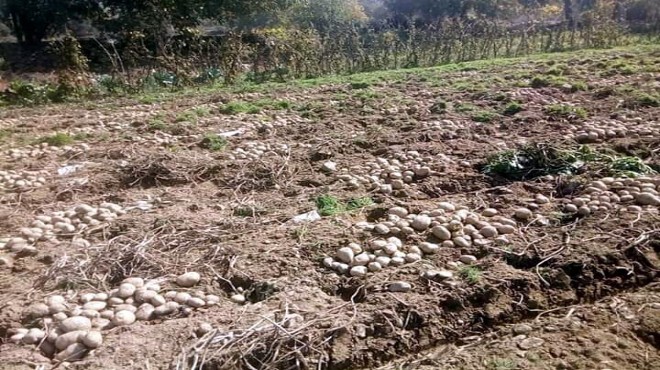 Ödemiş Ziraat Odası 2'nci başkanı olan çiftçi Tahir Balban, "Ödemiş'te dekar başına 3 ton patates çıkıyor. Yağışlar nedeniyle rekoltede büyük düşüş var. Köylü para kazanamıyor. Son zamanlarda gübreye ve ilaca yüzde 100, mazota ise yüzde 60 ila 70 zam yapıldı. Maliyet yükseldi. Çiftçi ancak geçen yılki borçlarını kapatıyor. Çiftçinin para kazanması için devletin bunu sübvanse etmesi gerekiyor. Mazot desteği ilan edildi, ancak yeterli değil. Geçen gün bir arkadaşımız 17 dönüm yer kazdı, 17 ton ürün çıkardı. Halbuki burada 100 ton mal çıkması gerekirdi" dedi. Çiftçinin sıkıntılarını anlatmayı sürdüren Balban, "Yazın bir ara patates fiyatları yükseldi. Devlet Suriye'den patates getirerek piyasayı kırdı. Ödemişli üretici, patatesini ya tarlada tutacak ya da depoya koyacak. Depoya koyduğu zaman stokçu mu oluyor? Ödemiş bir patates ambarıdır. Yağışlar nedeniyle sökümler geri kalmaya başladı. Tarlada bulunan patatesler zarar görüyor. Güneş açınca toprağın tekrar tava gelmesi 3-5 günü alıyor. 3-5 gün sonra bir daha yağmur yağınca sökümler gecikiyor" diye konuştu. (DHA)