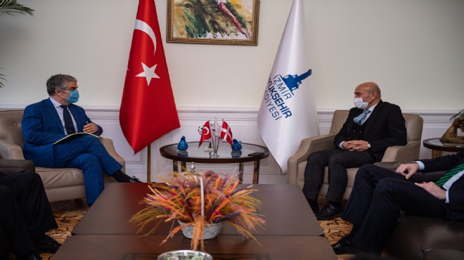 Büyükelçiyi ağırlamaktan büyük mutluluk duyduklarını söyleyen İzmir Büyükşehir Belediye Başkanı Tunç Soyer, yenilenebilir enerjinin öncelikli konuları arasında yer aldığını belirterek, “İki ülke arasındaki ticari ilişkileri güçlendirmek amacıyla İZFAŞ aracılığıyla iş günleri düzenleyebiliriz. Turizm, tarım, yenilenebilir enerji alanında işbirlikleri geliştirebiliriz. İzmir tarih boyunca tarım konusunda odak kent oldu. Biz bu potansiyeli artırmak, yeni pazarlar bulmak istiyoruz. Agro turizm konusunda çalışmalarımız var. Eylül ayında kültür zirvesi düzenleyeceğiz. Danimarka ile her zaman işbirliğine hazırız” dedi.