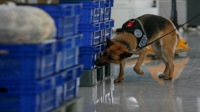 Adnan Menderes Havalimanı'ndaki patlayıcı tespit köpeği "Lucy", hassas burnuyla yolcu güvenliği için çalışıyor.