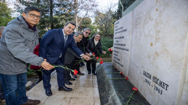 Saygı duruşu ve İstiklal Marşı’nın okunmasıyla başlayan etkinlikte konuşan Konak Belediye Başkanı Abdül Batur, Nazım Hikmet’in unutulmadığını ve asla unutulmayacağını vurgulayarak, “121 yıl geçmesine rağmen, demek ki öyle izler bırakmış ki onu unutmak mümkün değil. Onu gelecek kuşaklara taşımak da bizim başlıca görevimiz olmalı. Bu ülke adaletin, hukukun, insan haklarının, özgürlüğün yeniden tecelli ettiği, insanların yazdıkları için hapishanelere düşmediği bir ülke olmalı. Bunu başaracak olan da Nazım Hikmet’in devrimci ruhudur, onun bizlere aşıladığı bu ruhtur. Hepimiz birlikte bu mücadeleyi sürdüreceğiz. Başka şansımız yok. Umudumuzu yitirmeden yol almalı, geleceğe, aydınlık günlere umutla bakmalıyız” dedi. Mustafa Kemal Atatürk’ün de, Nazım Hikmet’in de Selanik doğumlu olduğuna dikkat çeken Batur, “Selanik doğumlu Atamız cumhuriyetimizi kurdu. Selanik doğumlu olan şairimiz dünyaya mâl oldu. Bizim amacımız Atamızın bize emanet ettiği cumhuriyeti en iyi noktaya getirmektir. Yolumuz Mustafa Kemal Atatürk’ün yoludur” diye konuştu.
