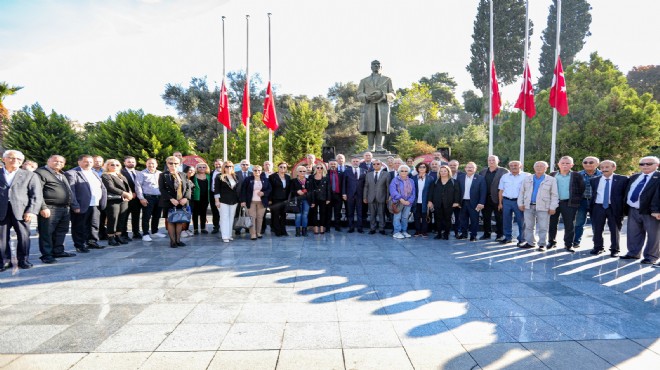 Sevgi Yolu sonundaki Atatürk Anıtı önünde düzenlenen törene Bayraklı Belediye Başkanı Serdar Sandal’ın yanı sıra, mahalle muhtarları, CHP İlçe Başkanı Didem Gültekin, siyasi partilerin temsilcileri ve meclis üyeleri katıldı. Atatürk Anıtı’na çelenk sunumlarının ardından toplu fotoğraf çektirildi.