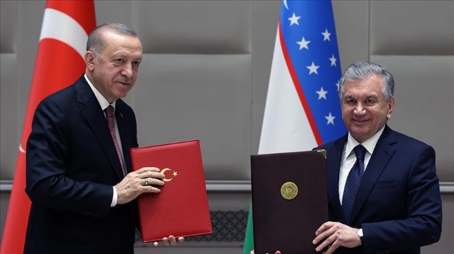 Özbekistan Cumhurbaşkanı Şevket Mirziyoyev ile imzaladıkları ortak bildirinin gelecek dönemde bir yol haritası teşkil edeceğinin altını çizen Erdoğan, "Bugün ayrıca Türk Devletleri Teşkilatımız başta olmak üzere, uluslararası platformlarda dayanışmamızı, bölgesel meselelerde yakın temasımızı sürdürmemiz noktasında irademizi teyit ettik. Bizim ortak yanlarımız çok, özellikle beslendiğimiz kaynaklar aynı" diye konuştu.