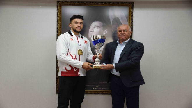 Müsabaka dönüşünde Antrenörü Mücahit Arat ile Belediye Başkanı Rıdvan Karakayalı’yı ziyaret eden Samed Ağdeve, gelecek yıl gerçekleştirilecek olan Dünya Şampiyonası için hız kesmeden çalışacağını söyleyerek desteklerinden dolayı Karakayalı’ya teşekkür etti. Başkan Karakayalı makamında ağırladığı Ağdeve’yi başarıları dolayısıyla kutlayarak hediye takdim etti.