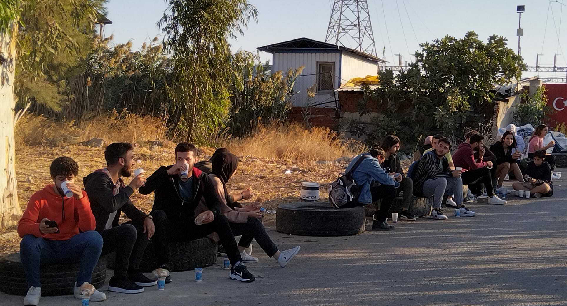 İzmir Katip Çelebi Üniversitesi yönetimi, İzmir Büyükşehir Belediyesi'nin yemek dağıtım araçlarına üniversite kapıları kapattı. Kampüs içine girmelerine izin verilmeyen belediye ekipleri, üniversite kapısı önünde yemek dağıtımını sürdürdü. Yüzlerce metre kuyrukta bekleyip yemek alan öğrenciler; kaldırımda ve araba lastiklerinin üzerine oturarak toz içinde yemeklerini yiyebildi.