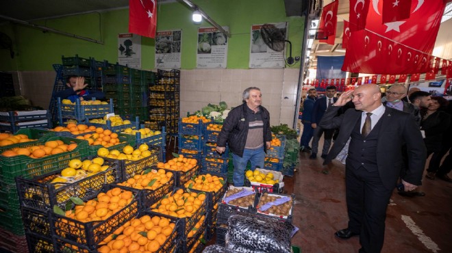 Etkinlik öncesi hal esnafını ziyaret eden Başkan Tunç Soyer, konuşmasında Türkiye’deki tarım politikalarından söz ederek “Türkiye, daha 50-60 yıl öncesine kadar, kendi kendine yetebilen, dahası etrafındaki ülkeleri de doyurabilen bir tarım ülkesi, bir tahıl ambarı oldu. Benim yaşlarımda olan herkesin, özellikle de yerli malı haftasında öğretmenlerinden duyduğu bu sözler, yazık ki artık geçmişte kaldı. Bir de Hakkâri’den Edirne’ye her ilin bitkisel ve hayvansal ürünlerinin yer aldığı bir Türkiye Haritası vardı. O da kayboldu. 50-60 sene içinde çok şey kaybettik. Ülkemizi postallarla işgal edemeyenler, zehirli tohumlarıyla ve kimyasallarıyla işgal ettiler. En büyük darbe, hiç kuşkusuz bir gecede 16 bin köyün kapatılması ile gerçekleşti. Tarım geleneğini sürdüren aile çiftçiliği, büyük şirketlere kurban edildi. Bereketli topraklarımız ve meralarımız yavaş yavaş yok edildi. Düşünün, anavatanı Anadolu olan buğdayı, bir zamanlar ambarı olduğumuz tahıl ürünlerini üretmek yerine dışarıdan ithal eder konuma geldik. Bu bizim için çok acı bir tablo” ifadelerini kullandı.