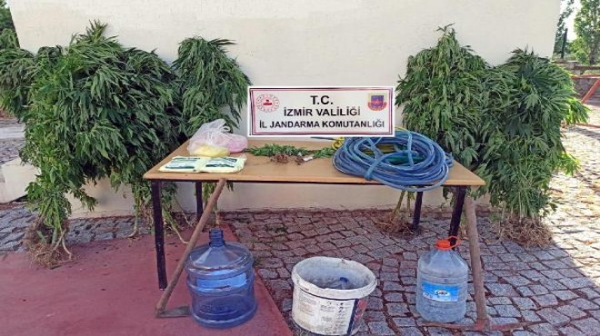 İl Jandarma Komutanlığı'na bağlı ekipler; Ödemiş, Torbalı, Urla, Kiraz, Kemalpaşa, Karaburun, Menderes, Bayındır, Seferihisar, Dikili ve Selçuk ilçelerinde 4-14 Haziran'da uyuşturucu operasyonu gerçekleştirdi. Operasyon kapsamında 5 bin 433 kök Hint keneviri, 1,5 kilo kubar esrar, 55,55 gram metamfetamin, 4 gram bonzai ve 2 ruhsatsız av tüfeği ile 11 fişek ve 95 tabanca mermisi ele geçirildi.
