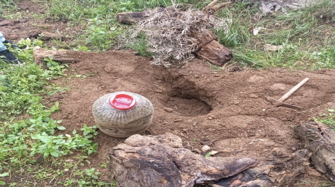 Ev ve bahçede yapılan aramada, toprağa gömülmüş plastik bidonlarda 2 kilo 750 gram esrar ele geçirildi.