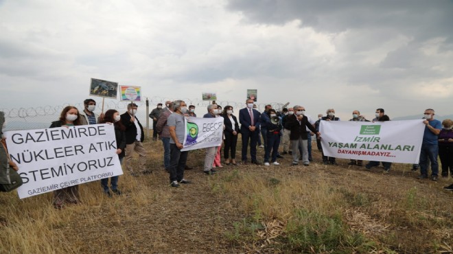 Eyleme destek verenler arasında yer alan Gaziemir Belediye Başkanı Halil Arda, şunları söyledi: “İlçemdeki bu soruna sahip çıktığınız için teşekkür ediyorum. Atıkların tespitinin üzerinden 13 yıl geçti. Ne yazık ki toplumun çevre bilinci yöneticilere yansımamış. Bu sorunun çözülmesi için bugüne kadar hiçbir adım atılmış değil. Burada tespit edilen atıklar nükleer santrallerdeki uranyumun ayrıştırılması için kullanılan bir madde. Yani ülkemizde bulunmuyor! Buraya nasıl geldiği belli değil. Görüyoruz ki atıkların bertarafı için hiçbir adım atılmıyor. Bu atıklar buraya nasıl geldi, kesilen cezalar tahsil edildi mi? Hiçbirinin cevabını bilmiyoruz. Hepsini şiddetle kınıyorum. Vatandaşlarımız adına başta Çevre ve Şehircilik Bakanlığı olmak üzere yetkilileri göreve çağırıyorum.”