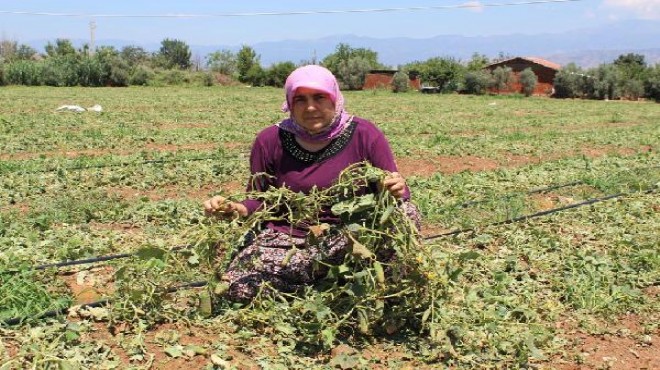 Bademli Mahallesi'nde 40 yıldır çiftçilik yapan Cengiz Sarı, "Yağmurla karışık dolu, 15 dakikada ne varsa ne yoksa bitirdi. Tüm emeklerimiz boşa gitti. 6 dönüm arazimdeki erik ağaçlarında bulunan 45-50 ton kadar ürünüm, ağaçların dibine döküldü. Kalanları ise berelendi. 4 dönümlük tarlamdaki turşuluk salatalık ve diğer sebzeler de aynı şekilde zarar gördü" diyerek, yetkililerden destek istedi. Cengiz Sarı'nın eşi Emir Sarı da zararlarının çok büyük olduğunu belirterek, "Çoluğumun çocuğumun bütün geliri bu tarlalardaki mahsulden gelecekti. Ancak, yağmur ve dolu hepsini aldı götürdü. Başka da bir gelirimiz yok. Şimdi biz ne yaparız? Salatalık üretimi 40-45 gün sürüyor. Daha yeni ürün almaya başlamıştık ki böyle bir afet ile karşılaştık" diye konuştu.