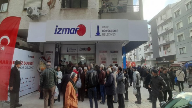 Efe Can TAN/GERÇEKİZMİR - İzmir Büyükşehir Belediyesi’nin uygun fiyatlı ürünleri halka buluşturmak için hayata geçirdiği İZMAR tanzim satış marketlerinin 17. Şubesi Karşıyaka’nın Nergiz Mahallesi’nde, Büyükşehir Belediye Başkanı Cemil Tugay’ın katılımı ile açıldı.