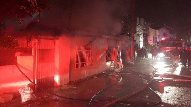 İzmir'in Karabağlar ilçesinde tek katlı bir evde çıkan ve bitişindeki yine tek katlı eve de sıçrayan yangında mahsur kalanları komşuları camlardaki demirleri keserek kurtardı.
