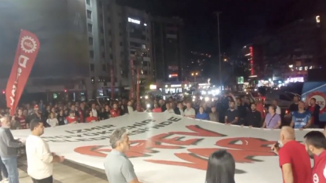 Kültürpark'ta toplanan işçiler dev grev pankartıyla sloganlar eşliğinde yürüdü. Öte yandan sendika, sabah saat 10:00’da DİSK Genel-İş İzmir Şubesi önünde toplanacak.