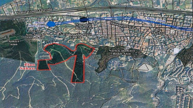 GERÇEKİZMİR - Çevre, Şehircilik ve İklim Değişikliği Bakanlığı, Narlıdere’de mülkiyetinin bir bölümü TOKİ’ye büyük bir bölümü ise Hazine’ye ait olan 237 dönümlük alanı imara açan planları onaylayarak askıya çıkardı.