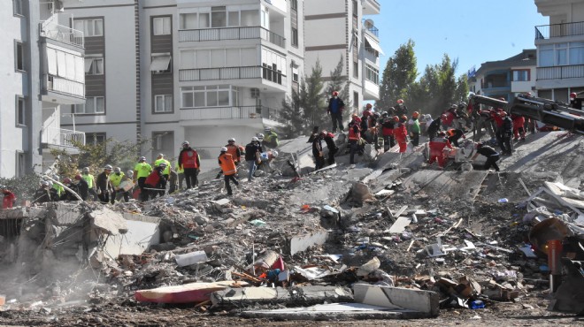 Seferihisar açıklarında dün meydana gelen 6.6 büyüklüğündeki depremde, ilk 3 katı çöküp yan yatan 11 katlı Yılmaz Erbek Apartmanı'ndaki arama -kurtarma sırasında çökme yaşanmaması için binaya vinçler ile destek sağlandı. Binanın zemin katındaki markette bulunduğu sırada enkaz altına kalan Halim Sarı ile temas kuruldu. Arama-kurtarma görevlilerinin konuştuğu Sarı’nın bilincinin açık olduğu belirlendi. Yapılan çalışmayla Halim Sarı kurtarıldı. Yaralı Halim Sarı, ambulansla hastaneye kaldırıldı. (DHA)