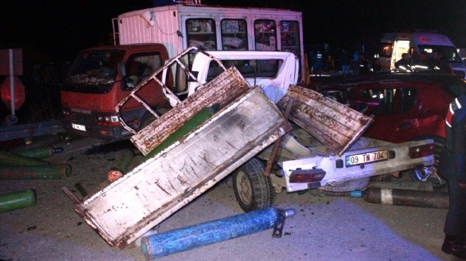 Hüseyin Yılman'ın (47) kullandığı 35 BE 332 plakalı otomobil, Ali Ç. yönetimindeki 09 TN 704 kamyonet ile Hüseyin G. idaresindeki 35 ANU 319 plakalı kamyonet, Denizli-Ödemiş kara yolunun Kaymakçı Mahallesi girişinde çarpıştı.