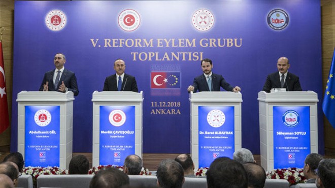 Reform Eylem Grubu'nun 5. Toplantısı Adalet Bakanı Abdulhamit Gül'ün ev sahipliğinde, Dışişleri Bakanı Mevlüt Çavuşoğlu, Hazine ve Maliye Bakanı Berat Albayrak ile İçişleri Bakanı Süleyman Soylu'nun katılımıyla yapıldı.