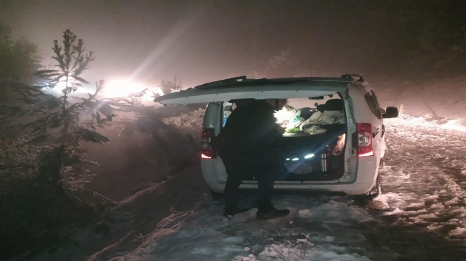 Olay, dün akşam saatlerinde İzmir’in Ödemiş ilçesi Horzum Mahallesi yakınlarında meydana geldi. Ödemiş ilçesinden Manisa’nın Turgutlu ilçesine giden 3 otomobil ve 1 servis aracı, bölgedeki yoğun kar yağışı nedeniyle yolda mahsur kaldı. Mahsur kalanların durumu ekiplere bildirmesi üzerine, olay yerine Turgutlu Belediyesi ve Manisa Büyükşehir Belediyesi’ne bağlı ekipler sevk edildi. Bölgeye ulaşan ekipler, aralarında çocukların da bulunduğu ailelere erzak ve kumanya yardımında bulunduktan sonra yol açma çalışmalarına başladı. Çalışmalar sırasında kara saplanan araçlar, belediye ekipleri tarafından kurtarıldı. Yaklaşık 4 saat mahsur kalan vatandaşlar kar küreme çalışmasının ardından yola devam etti.