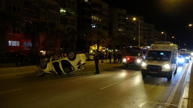 İzmir'in Konak ilçesinde, sürücüsünün kontrolünden çıkan otomobil  takla ...