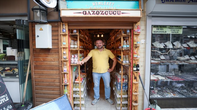 İzmir'in Urla ilçesinde 5 metrekarelik dükkanında 100 ayrı markaya ait 120 çeşit gazoz satan Ferhat İskit, müşterilerinin rağbetinden memnun...