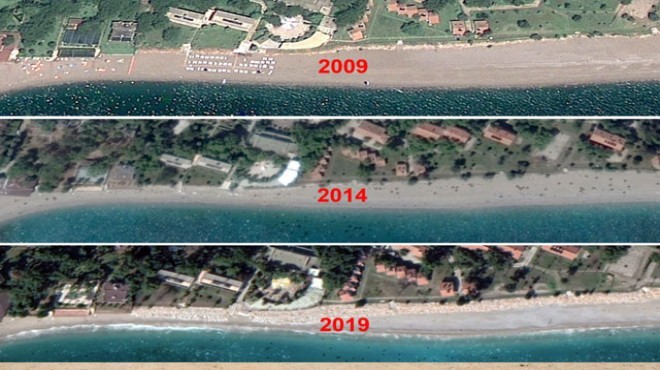 Prof. Dr. Dipova, uydudan elde ettikleri görüntüleri de paylaştı. Görüntülerde sahilin erimesi çekilen fotoğraflarla net bir şekilde görülüyor.
