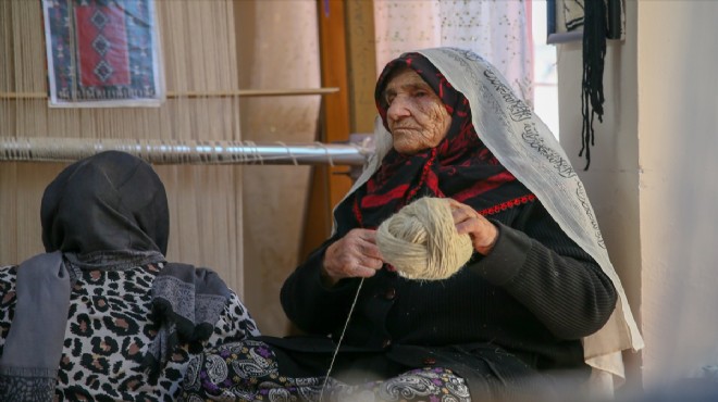 İzmir'in Kemalpaşa ilçesinde, halk eğitimi merkezinde açılan halı ve kilim dokuma kursuna katılan 85 yaşındaki Havva Sukes, ilerleyen yaşına rağmen motifleri ilmek ilmek dokuyor, diğer kursiyerlere de tecrübesiyle yol gösteriyor.