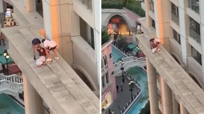 6. kat hizasındaki sütunların üstündeki çıkıntıya düşen Alsubaihi'yi görenler yanına ulaşarak, yardım etmeye çalıştı.