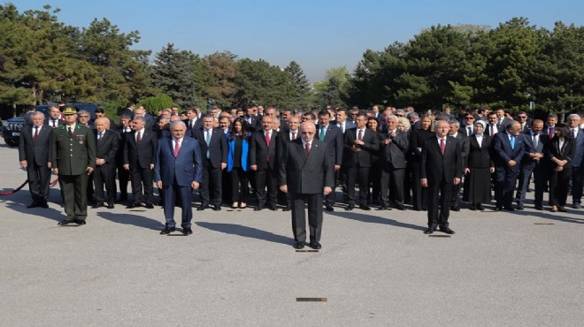 Aslanlı Yol'da yürüyerek Atatürk'ün mozolesine gelen heyet, TBMM Başkanı Kahraman'ın mozoleye çelenk bırakmasının ardından, saygı duruşunda bulundu ve İstiklal Marşı'nı okudu.