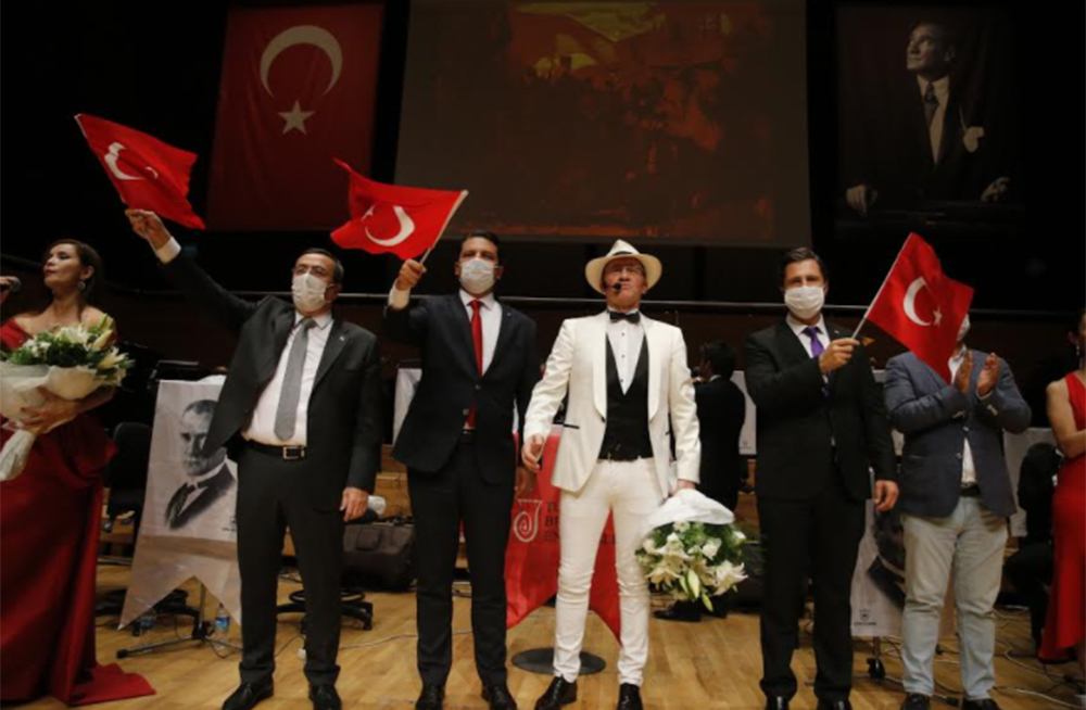 Cumhuriyet Bayramı coşkusu, Konak Belediyesi’nin Ahmet Adnan Saygun Sanat Merkezinde (AASSM) düzenlediği 29 Ekim Cumhuriyet Bayramı Özel Konseri ile yaşandı. Türkiye Cumhuriyeti’nin kuruluşunun 97’nci yılı anısına gerçekleştirilen konseri Konak Belediye Başkanı Abdül Batur, CHP İzmir İl Başkanı Deniz Yücel, CHP Konak İlçe Başkanı Çağrı Gruşçu, belediye meclis üyeleri ve sanatseverler izledi. AASSM’nin Büyük Salonundaki konser pandemi kurallarına göre düzenlenirken konserin tamamı canlı yayınlandı. Çanakkale Zaferi’nden Türkiye Cumhuriyeti’nin kuruluşuna uzanan yolculuğun sanatın gücüyle anlatıldığı gecede Turkish Brass Ensemble Orkestrası sahne aldı.