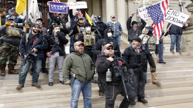 Kendilerini "Lüzumsuz Karantinaya Karşı Olan Michigan Halkı" olarak adlandırılan bir grup, corona virüs salgınına karşı eyalette uygulanan karantinayı protesto etmek amacıyla Michigan'ın başkenti Lansing'de parlamento binası önünde protesto eylemi yaptı.