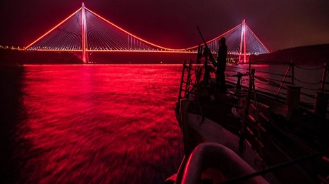 Fotoğrafın sağ tarafında ise güvertedeki makineli tüfeğin başında bir askerin hazır bulunduğu ve dürbünle Yavuz Sultan Selim Köprüsü'ne doğru bakışı göze çarpıyor.