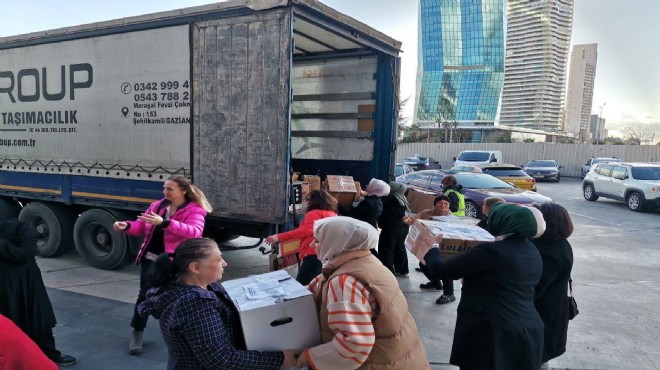 AK Parti İzmir İl Kadın Kolları Başkanı Dilek Yıldız Büyükdağ, ‘Sıcak Sofralar Tekrar Kurulsun Mutfak Seti’ kampanyası kapsamında, kadın kolları olarak deprem bölgesine yardım TIR’ı çıkardıklarını belirterek, ‘’İlk günden bu yana depremzedelerimizi yalnız bırakmayan ve kampanyamıza destek veren herkese şükranlarımızı sunuyoruz. Bu zor günleri hep birlikte atlatacak, yaralarımızı birlikte saracağız." dedi.